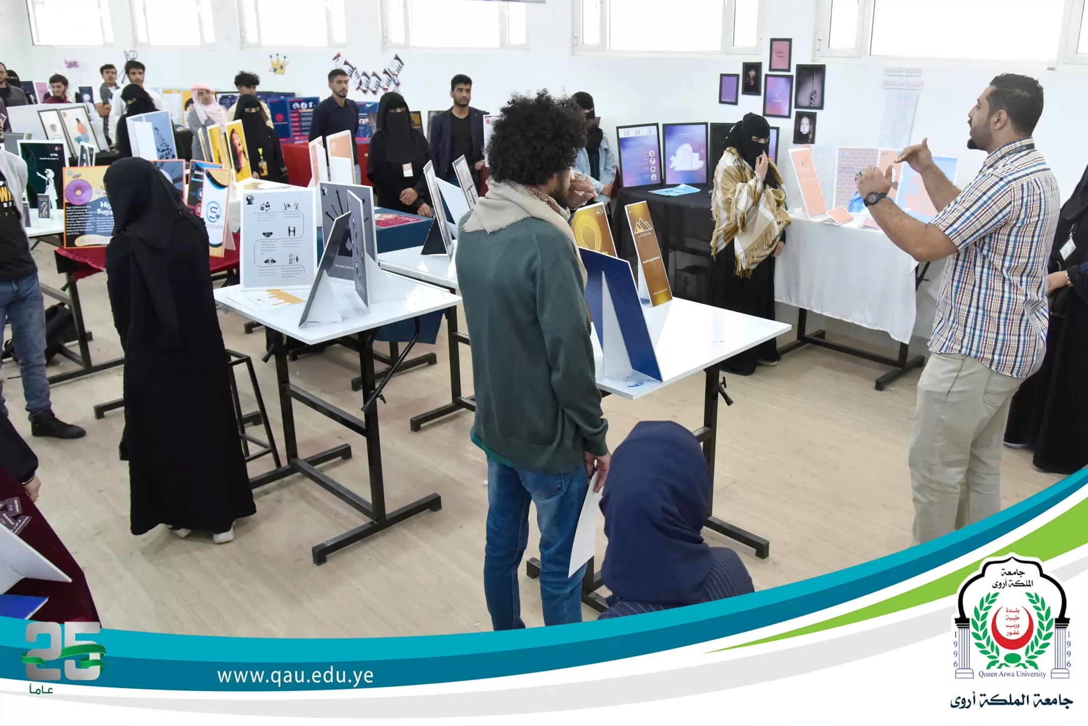 أقام طلبة المستوى الثالث جرافيك يوم السبت الموافق 12-11-2022م بالمرسم رقم (6) معرض بالأعمال النهائية لمقرر استوديو تصميم جرافيك تحت إشراف المهندس/ بسام الشرجبي مدرس المقرر وبحضور عميد الكلية د/ عبدالملك الصلوي وعدد من أعضاء هيئة التدريس بالقسم والطلبة المهتمين