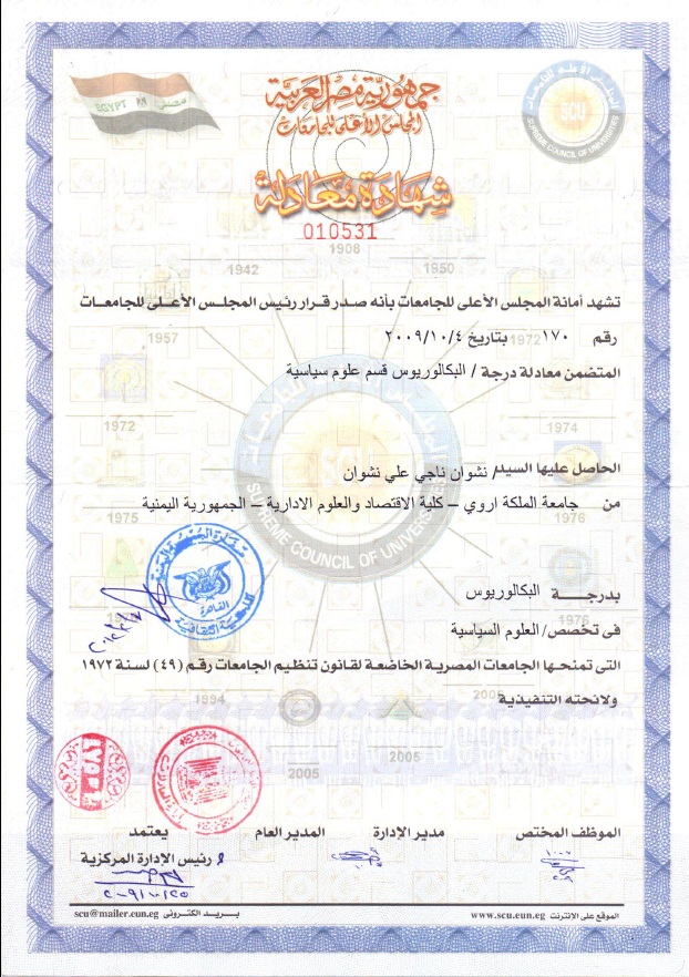 نماذج معادلة شهادات الجامعة